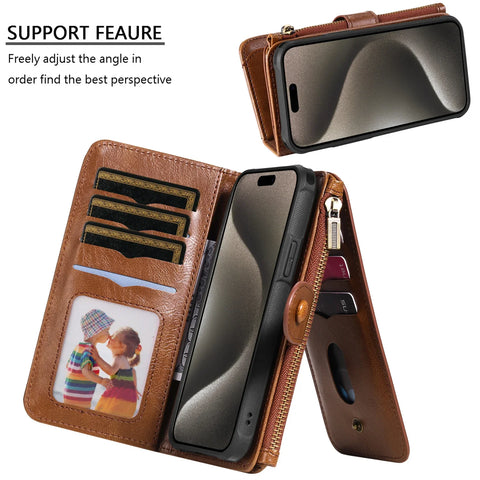 Protect your iPhone with this expertly crafted 2in1 detachable magnetic wallet case made from premium retro leather. Designed for durability and style, it combines a sleek phone case with a practical wallet that securely holds your essentials. The magnetic detachable feature allows effortless switching between functions, offering convenience without added bulk. This case delivers reliable protection and refined craftsmanship for everyday use.