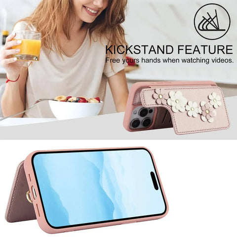 The Finger Grip Ring Magnetic Button Case for iPhone 16 combines robust protection with an elegant floral design. It features an anti-fingerprint and anti-scratch coating to preserve the case’s pristine appearance. Practical elements include a card pocket for easy storage, a built-in kickstand for hands-free use, and a secure lanyard for added convenience and safety. This expertly crafted case enhances both the look and functionality of your device.