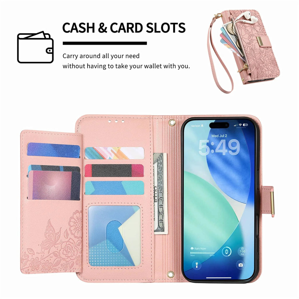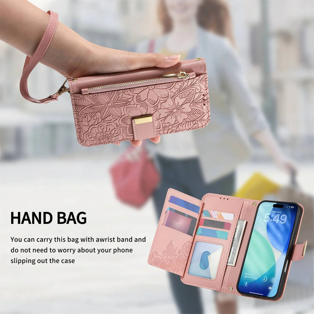This Floral Flip Lanyard Wallet Case for iPhone combines elegant PU leather with robust protection features. It is designed to be shock-proof and resistant to scratches and fingerprints, ensuring lasting durability and a clean appearance. The integrated kickstand enhances usability by enabling comfortable hands-free viewing, while the attached lanyard provides added convenience and security for everyday carry. Ideal for those seeking both style and reliable protection.